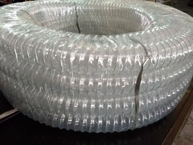 Mangueira vácuo ar pu - Mangueira 100% poliuretano (PU) com estrutura helicoidal de aço cobreado revestido com poliuretano. Suas aplicações comuns são Indústria moveleira, para exaustão de pó de madeira; Indústria cerâmica para exaustão de pó de argila; Indústria metalúrgica na exaustão de névoa de óleo; Indústria de reciclagem no transporte de materiais triturados; Indústria plástica para o transporte de grânulos (pellets) e Indústria papeleira, no transporte de aparas de papel.
